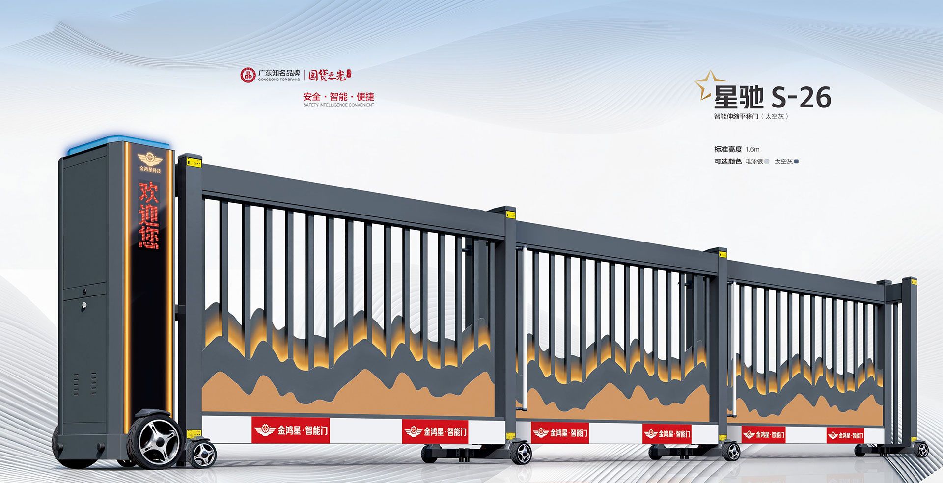 廣東金鴻星智能科技有限公司成立于2002年,是一家集工業(yè)門(mén)、伸縮門(mén)、懸臂門(mén)、平移門(mén)、別墅庭院門(mén)、特種門(mén)、監(jiān)獄門(mén)、監(jiān)舍門(mén)、道閘、車(chē)牌識(shí)別、智慧停車(chē)等戶(hù)外產(chǎn)品的研發(fā)、制造、營(yíng)銷(xiāo)為一體的全產(chǎn)業(yè)鏈國(guó)家高新技術(shù)企業(yè),總部位于佛山高新區(qū)三水園,廠(chǎng)房面積近40000平方米。